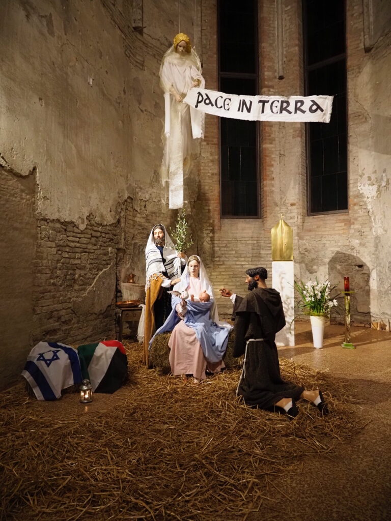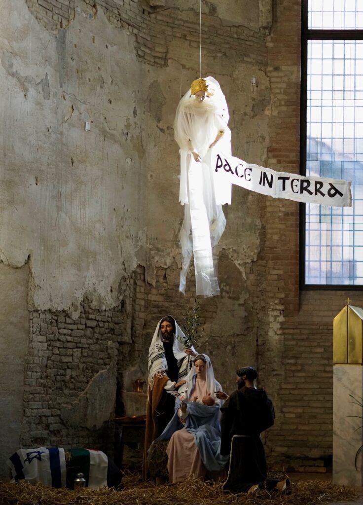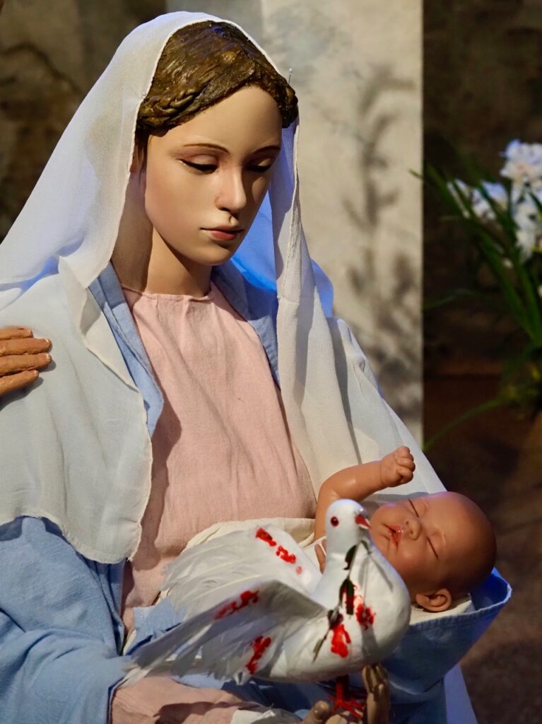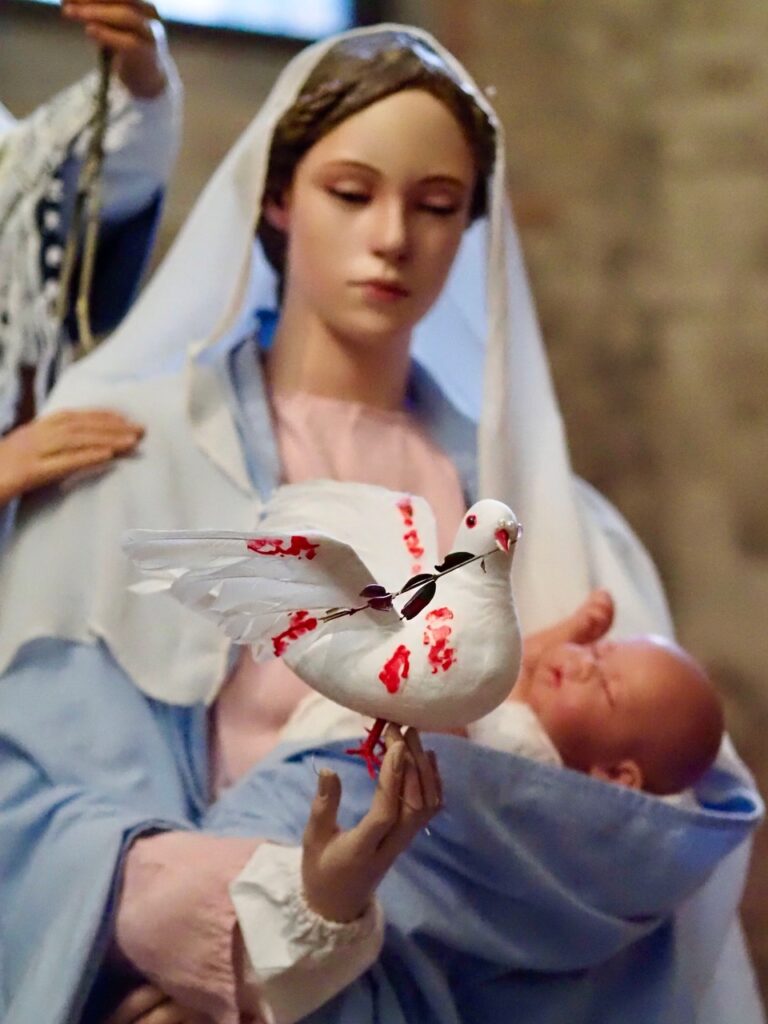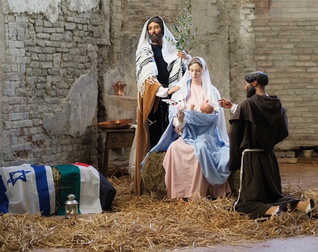 Christmas 2023. Saint Francis has been pointing it out to us with insistent emotion for eight centuries: Greccio 1223-2023. We contemplate the mystery of love of God’s descent into our fragile flesh through a Virgin Mother. Jesus, prince of peace, brings its gift to men on earth. A peace that descends from heaven with the angelic announcement, invoked by the righteous in prayer, like Saint Joseph. A peace that is still fragile and wounded – in the bloody dove – by the death of so many innocent people who suffer. A peace entrusted to our freedom, which starts from a pacified heart, from gestures of reconciliation.